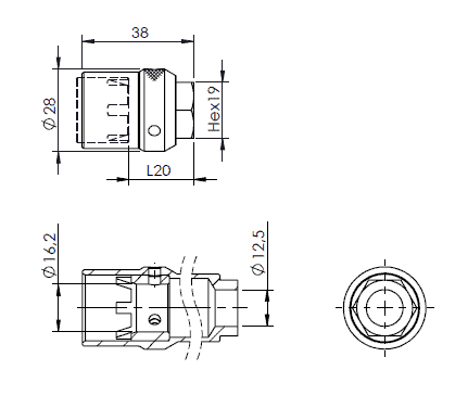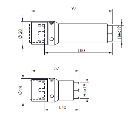 Extension tube ER16M to 19 mm hex for 40 mm tool length
