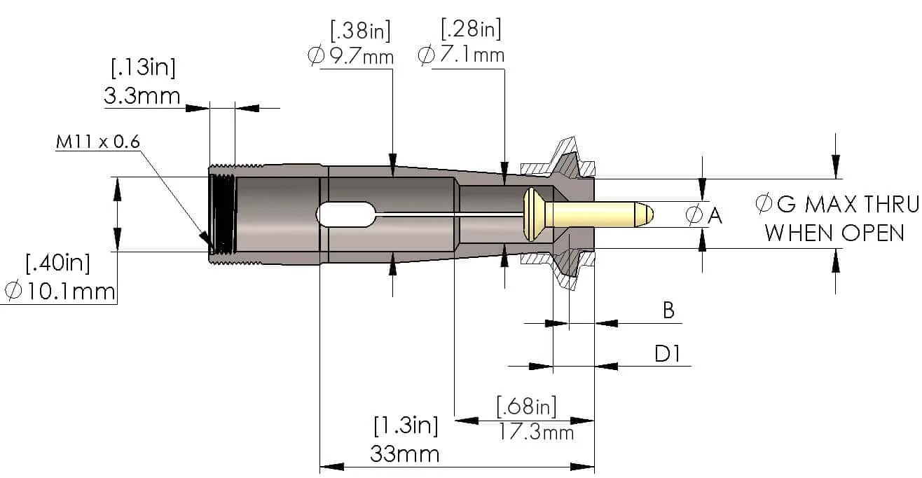 N/A 2.3 to 2.38 mm0.0905 to 0.0937 in