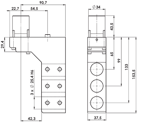 N/A 3 x Ø 25.4